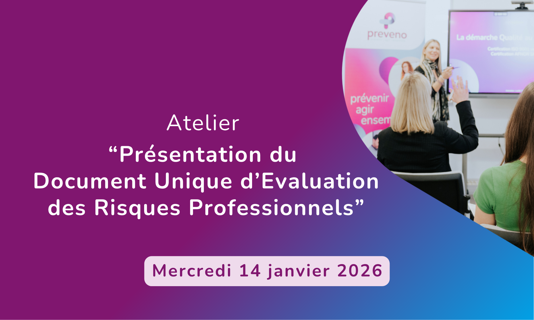 preveno a le plaisir de vous inviter à son prochain atelier Offre de Service, le jeudi 13 novembre 2025.