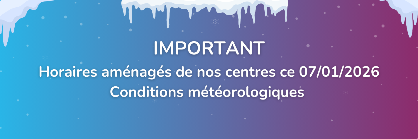 En raison des conditions météorologiques difficiles ce mercredi 07/01/2026 et afin d’assurer la sécurité de tous, nous vous informons que l’ensemble de nos centres médicaux fermeront plus tôt :